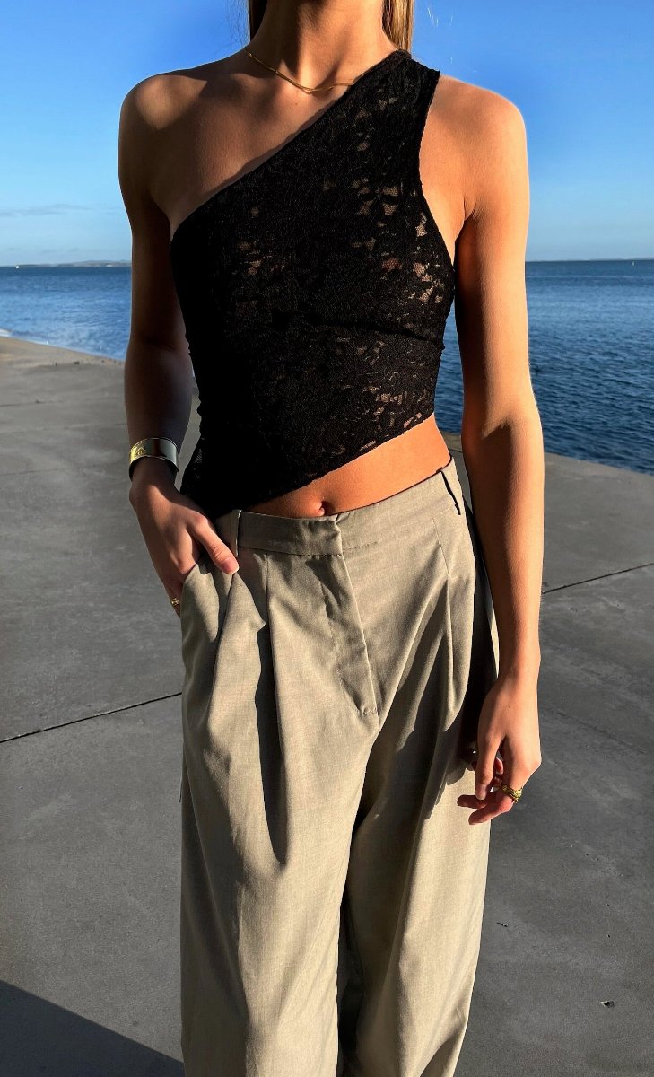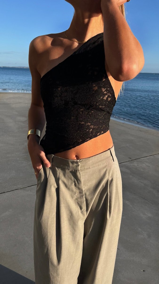 Blonde top som bindes på ryggen og kan tilpasses kroppen efter ønske. Toppen har 2 lag og syner derfor ikke helt gennemsigtig.